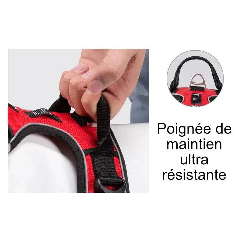 Doté d’une double attache (poitrail et dos) et d’une poignée dorsale, il s’adapte aux promenades urbaines, sportives ou en nature. Conçu pour limiter la traction, il convient aux chiots comme aux chiens adultes.